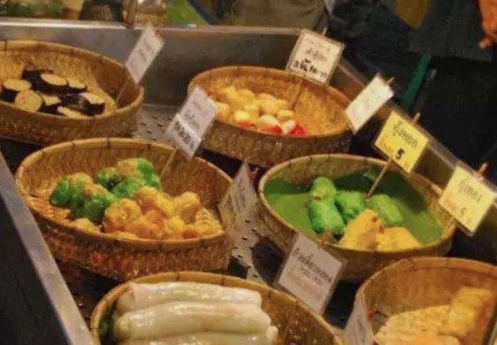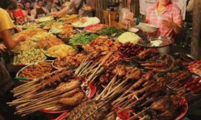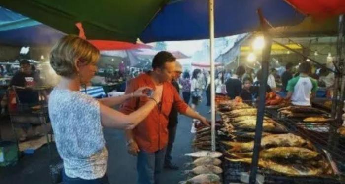 夜市的泰式酸辣豬脊骨是一定不能錯過的美味,在特製湯汁中煮熟的豬脊骨,淋上酸辣的醬汁,味道鮮美,酸辣爽口!還有炸魷魚蛋,是先炸過再拌炒,口感外酥內軟,而且一定要蘸醬吃,又酸又辣!還有各種炸蟲子大餐、小章魚、大碗麵、龍蝦麵、大碗冰等,都非常有名。